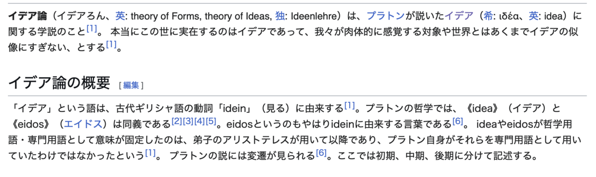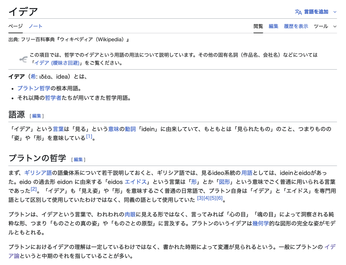 その原義である「形、姿、類似」を意味する「eidos」は、以下の有名なイデアにつながります。